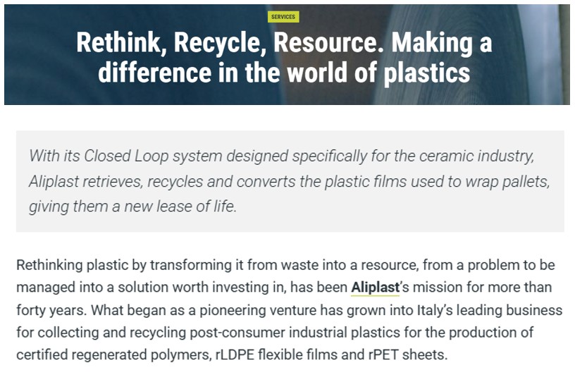 Services Rethink, Recycle, Resource. Making a difference in the world of plastics