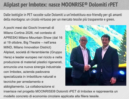 Aliplast per Imbotex: nasce Moonrise Dolomiti rPET